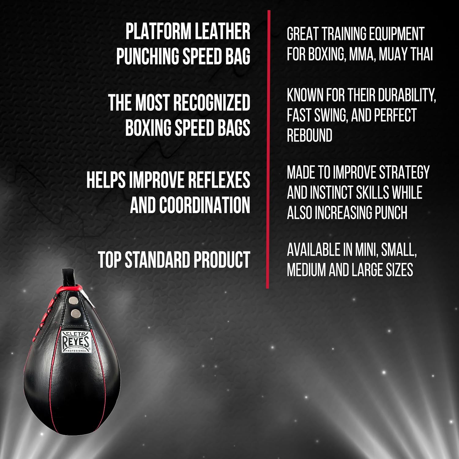 Cleto Reyes Speed Bag has a well-defined detail that helps improve reflexes and coordination on each hit. These bags are specifically made to improve skills for strategy and instinct while also increasing punch speed. The proper air pressure is about 10 Lbs. Small sizes are recommended for a proficient level. Size: Mini-/5×8″ Small/6×9″ Medium/7×10″ Large/7×11″